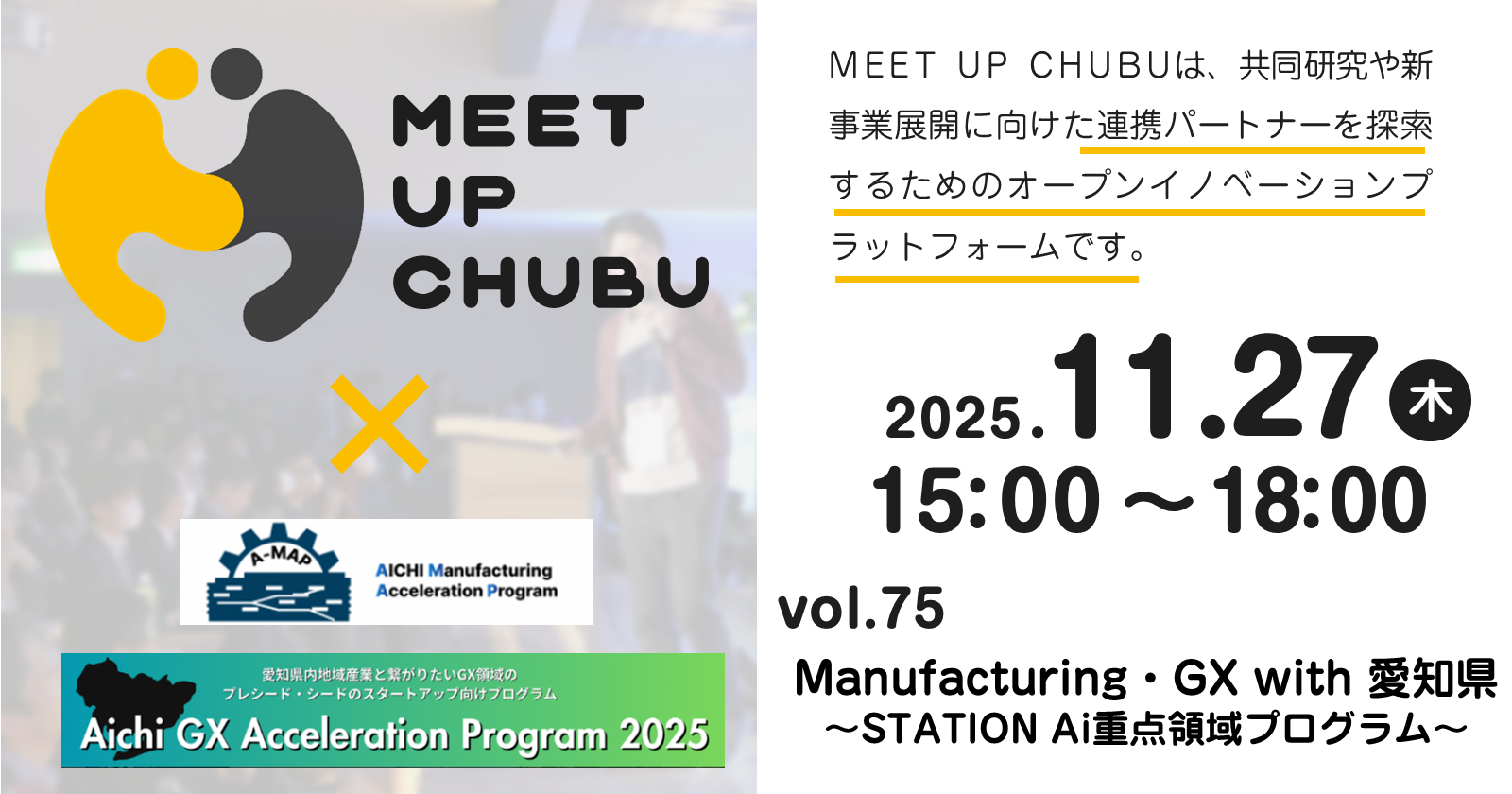 『MEET UP CHUBU』は、「共同研究、新事業展開に向けたオープンイノベーション(協業先の探索)」を