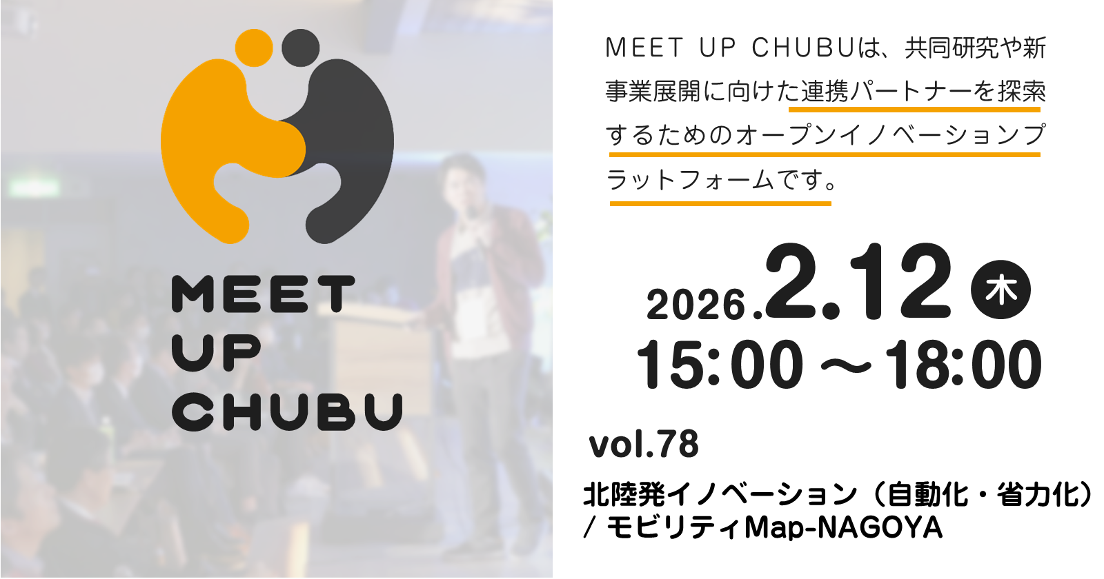 『MEET UP CHUBU』は、「共同研究、新事業展開に向けたオープンイノベーション(協業先の探索)」を