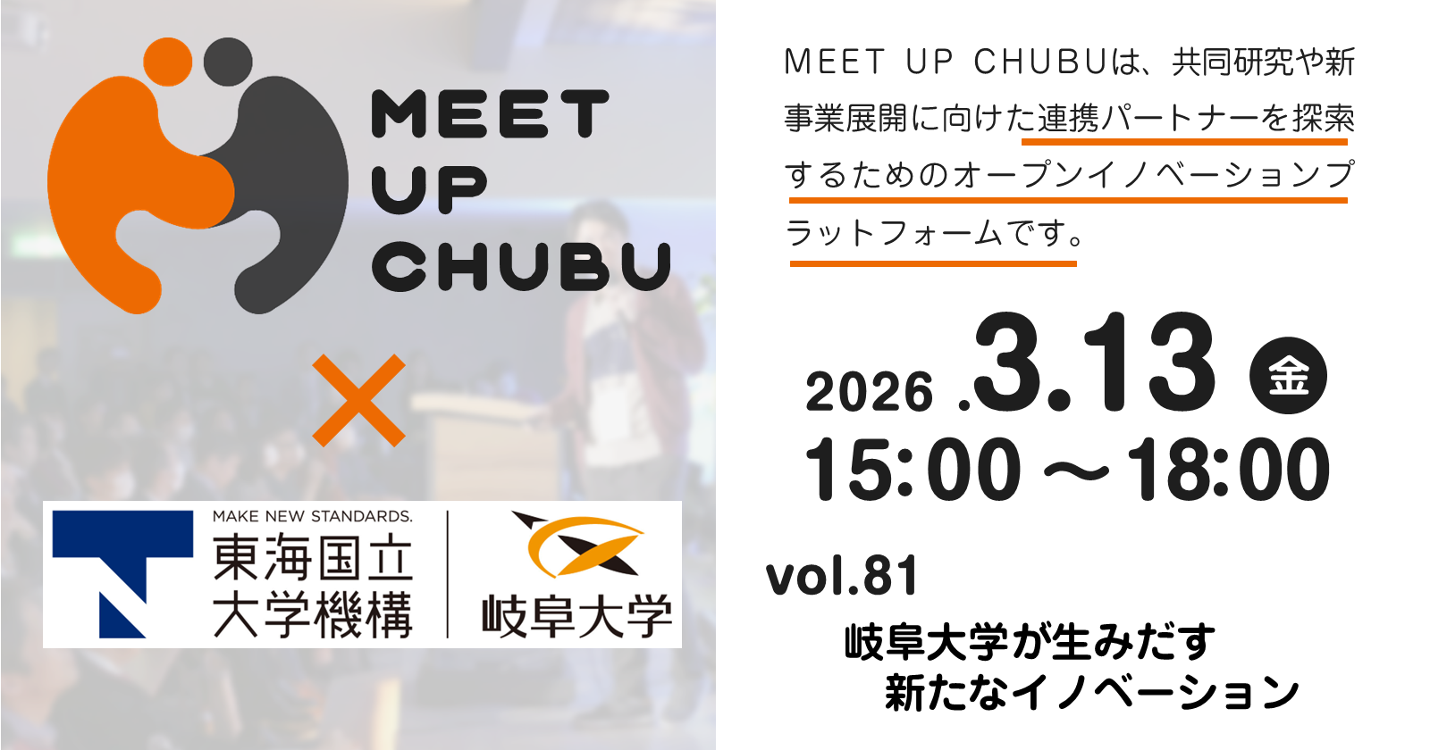 『MEET UP CHUBU』は、「共同研究、新事業展開に向けたオープンイノベーション(協業先の探索)」を