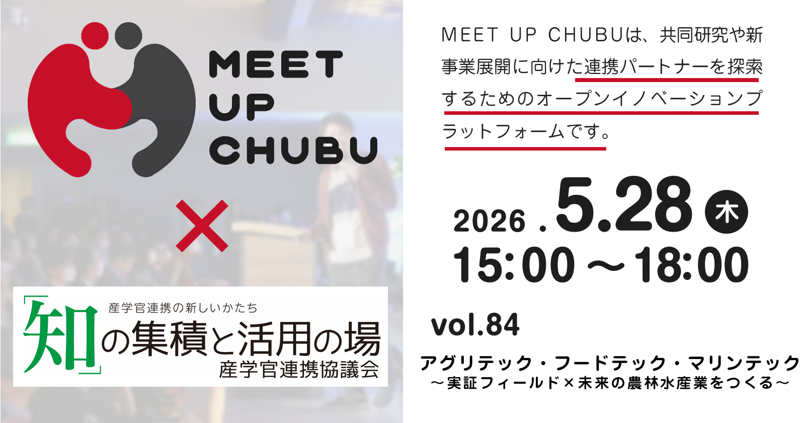 『MEET UP CHUBU』は、「共同研究、新事業展開に向けたオープンイノベーション(協業先の探索)」を
